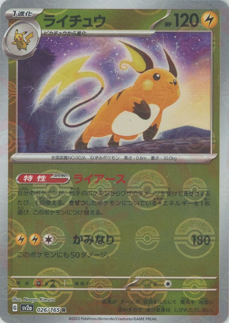 ライチュウ:モンスターボールミラー(R){雷}〈026/165〉[SV2a-Mo]